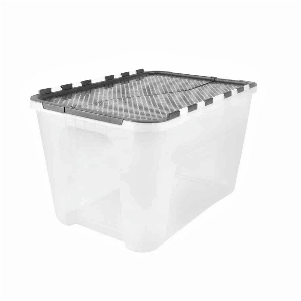 This deluxe HDX Flip Top Storage Tote is designed for all your storage needs inside and out. It features an easy open top and 12 Gal. of spacious room to easily and conveniently store most household items, toys, books, files and other accessories efficiently. It features a blue and clear design for a stylish yet functional appeal and for easy visibility of the container’s contents. With a flip top lid that protects your valuables from dust and moisture, this storage tote will provide years of perfect storage space whenever you need it.