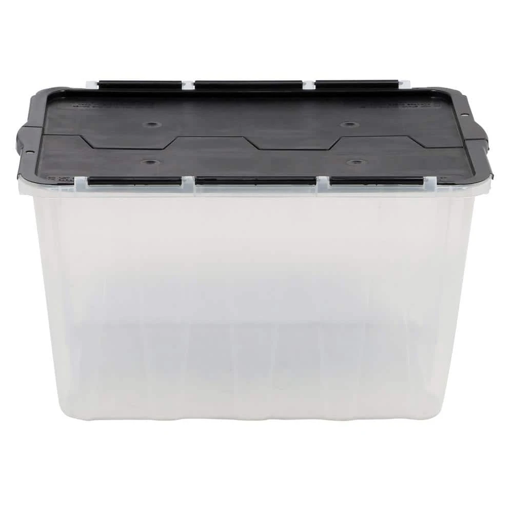 The HDX 12 Gal. Storage Tote is the perfect solution for storing items in the attic, basement, closet or anywhere else that’ll keep your personal items out of your way. For added convenience, you can stack multiple totes. The clear and black on the tote complement many home decor styles.