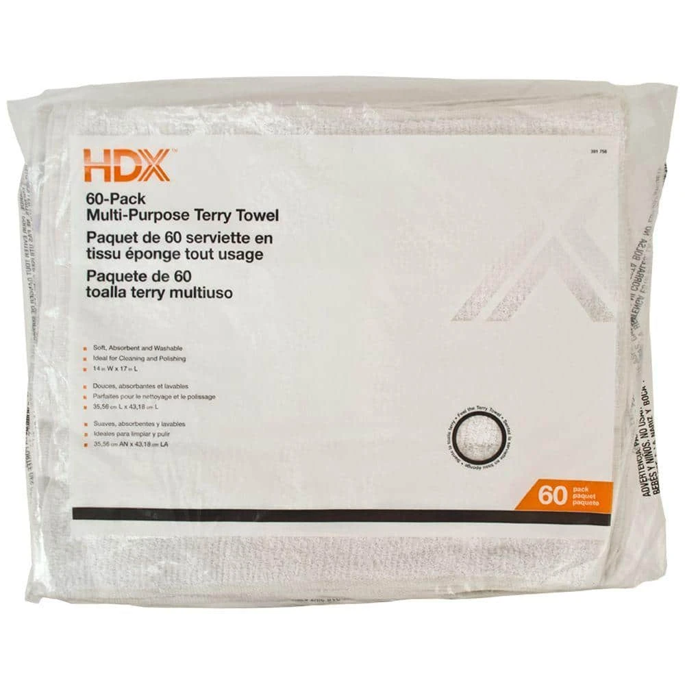 Multi-purpose terry towels are made from cotton for excellent absorbency. Towels are large and strong for repeated use. They are great for use in most cleanup jobs at home, work, shop or in commercial janitorial applications.