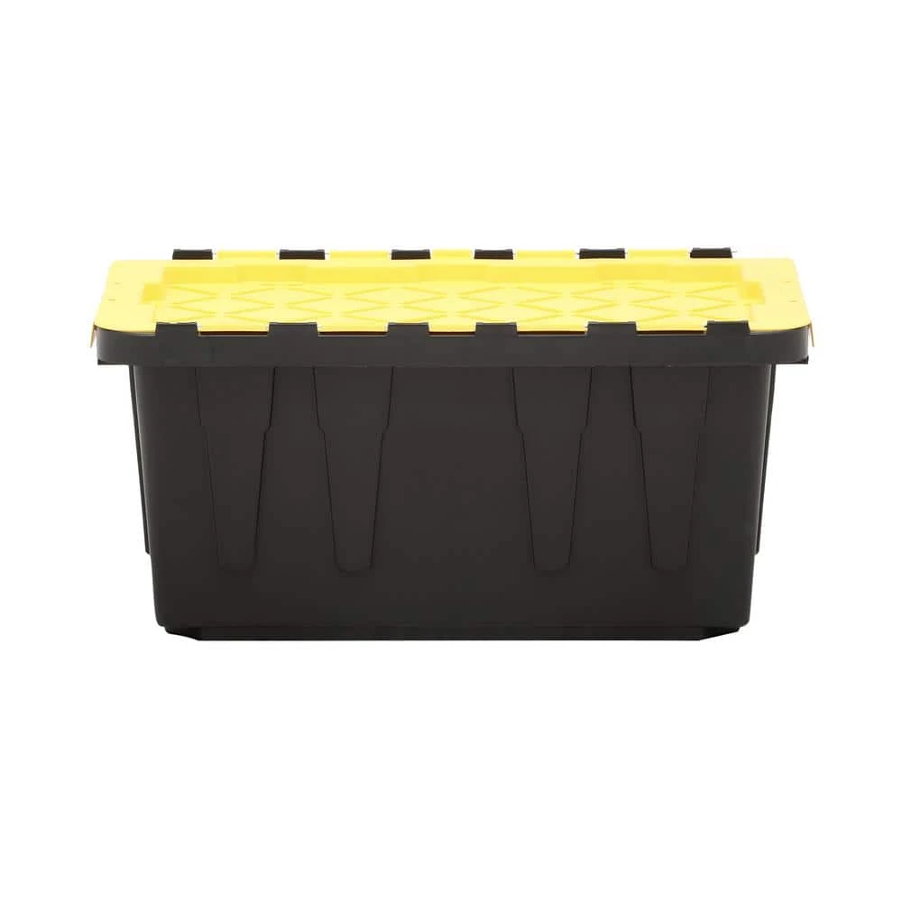 This HDX easy access flip top tote comes in a 17 Gal. capacity, allowing for plenty of storage space. The added metal hinges through the attached lid provides extra strength and durability for a more flexible use. Pre-drilled holes in the top of the lid are added to make these lockable and accept cable ties for security. When not in use, these storage containers can be nested to give you more storage space.