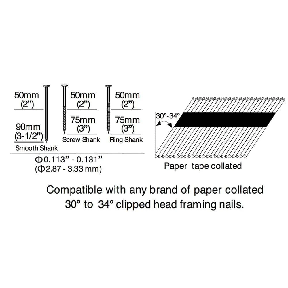 The HDX Pneumatic 30° – 34° Clipped Head Framing Nailer is an excellent lightweight option for driving 2 in. – 3 1/2 in. plastic collated nails in projects such as framing, sheathing, remodeling and outdoor work. This nailer is designed for convenience with tool-free depth adjustment, an easy-load magazine and an adjustable exhaust port. The driving mechanism is constructed to prevent dry firing.
