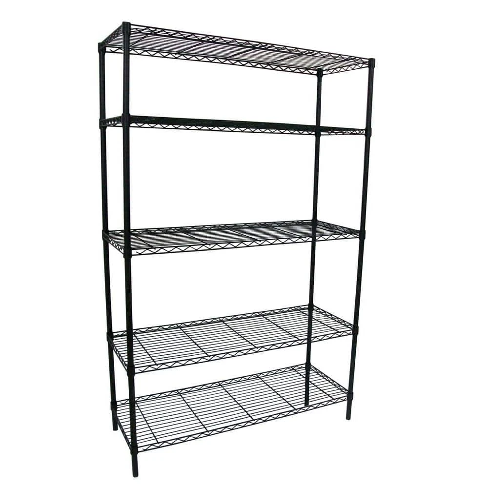 This HDX 5-Shelf Storage Unit offers consumer-grade shelving and is ideal for creating storage space in any room, whether for industrial or residential use. The heavy-duty shelving unit can support 1750 lbs., evenly distributed, for optimal use in kitchens, pantries, utility rooms, warehouses and garages, featuring tubular steel construction with a durable black finish. All 5 shelves are easily adjustable height to ensure items fit perfectly and the unit can be conveniently assembled without any tools.