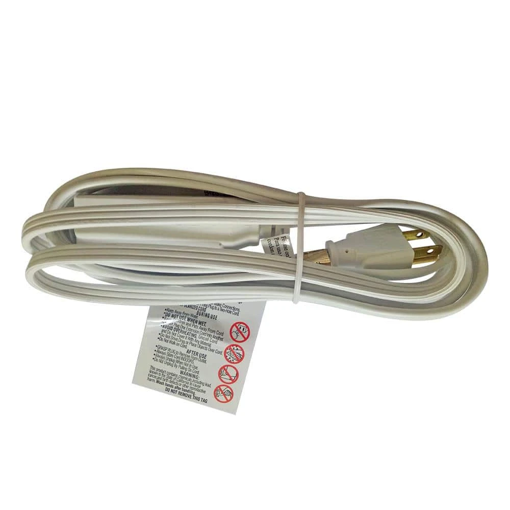 For small appliances, use this 8 ft. White 16/3 SPT-2 Extension Cord. It’s great for tight areas thanks to a flat plug which lets the cord rest flush against the outlet.