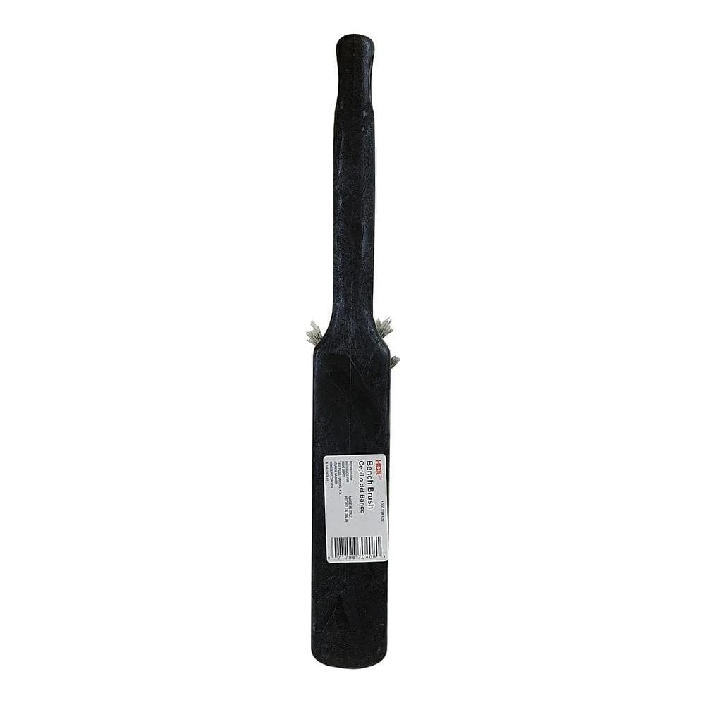 - Brush features a 14 in. long, molded handle