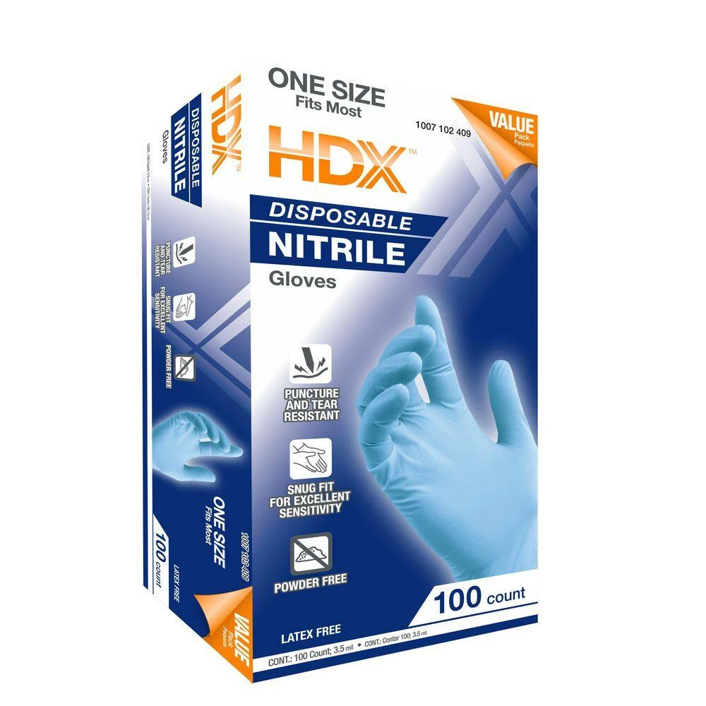 When you need a disposable glove for those messy and dirty jobs or just want to protect your hands, look no further than the HDX Disposable Nitrile Gloves. These 3.5mil, blue nitrile gloves are puncture resistant and create a snug, second-skin protective barrier that will keep your hands clean and dry. Whether you are deep cleaning a kitchen or bathroom, mopping floors, or scrubbing dirty surfaces, these durable gloves will keep you safe, comfortable and confident that your hands are protected. Safe for those with latex allergies, they are a great choice for worry-free protection.