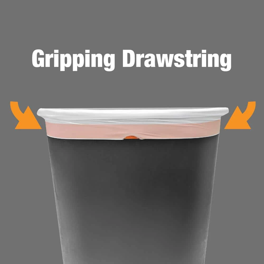 HDX FlexPro Drawstring Kitchen Bags have a double-thick top to add strength where it is needed most. The expandable drawstring feature allows the top of the bag to comfortably grip the trash can, reducing the risk of slipping inside the can. Flex technology improves the bag’s containment capacity.