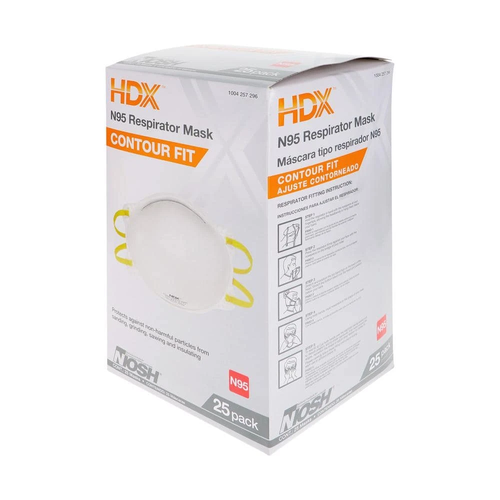 HDX N95 Disposable Respirator with foam nose piece and the ultrasonic welded elastic head strap has the capabilities to remove up to 95% of solids in the air. This respirator will keep you from processing particulates in the air from activities like sanding, sawing and more. Double head straps and nose clip will allow for a secure and customized fit.